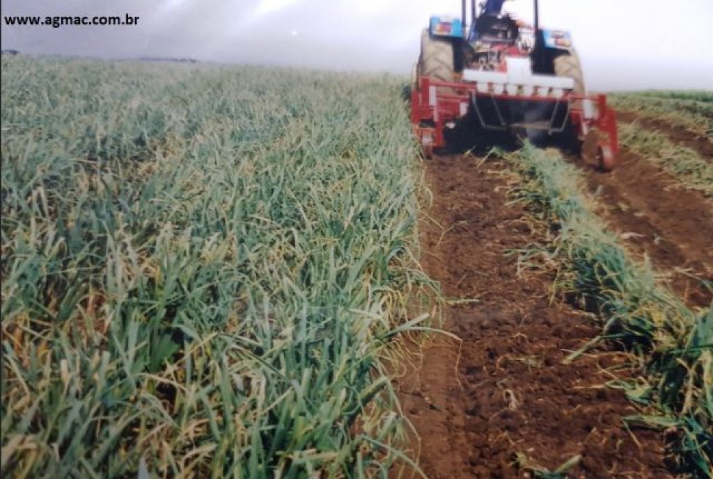 - Destinada a colheita do canteiro inteiro de alho de seis fileiras, fazendo o processo de afrouxamento, arranque, sistema vibratório para diminuir a terra da raiz e em seguida descarrega em leiras centrais do canteiro,