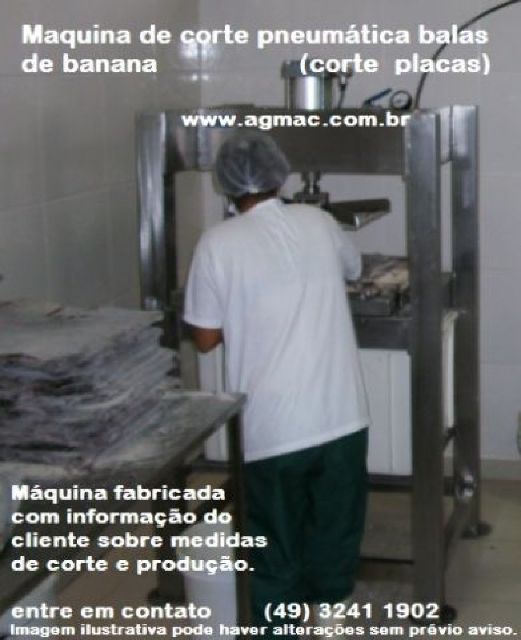 Máquina de acionamento pneumático para o corte das placas de doces, por exemplo a bala banana, neste caso foi dimensionado para 2 cm x 2 cm x 2 cm.