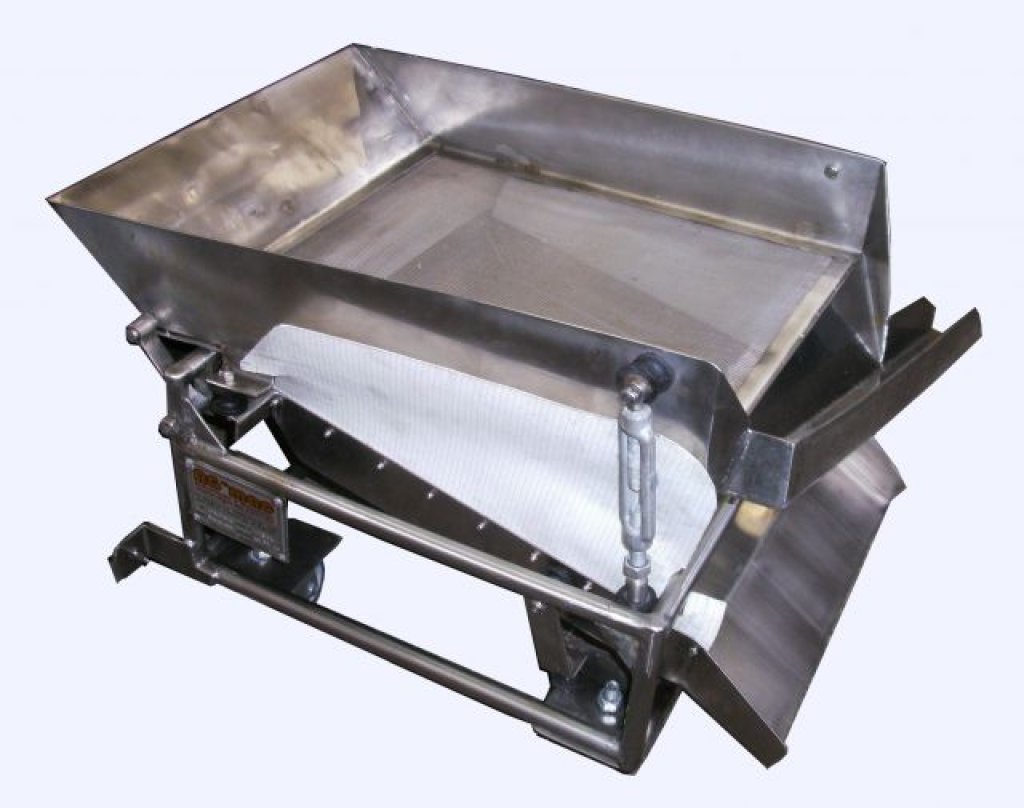 <p>Máquina destinada a ficar em separado para alimentaçao manual, onde é necessário classificar a mistura de sal, sal grosso, temperos em pó, ou granulados, possui uma grade superior com tela onde ficam a maior classificação, e uma calha que separa o produto menor classificado, o sistema é vibratório e sobre rodas, sendo duas fixas e duas giratórias com trava de estacionamento.</p>