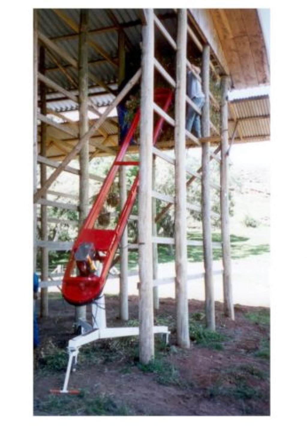Com elevador hidráulico facilita o posicionamento até 5 metros de altura, chegando a plataforma de base de trabalho das 3 ou 4 últimas fileiras (veja a segunda foto) da maioria dos galpões onde pode ser complementado o trabalho manualmente de armazenagem em ripas ou taquaras dos feixes de alho, com muito mais segurança e sem precisar jogar o alho, arriscando a qualidade do produto na armazenagem.