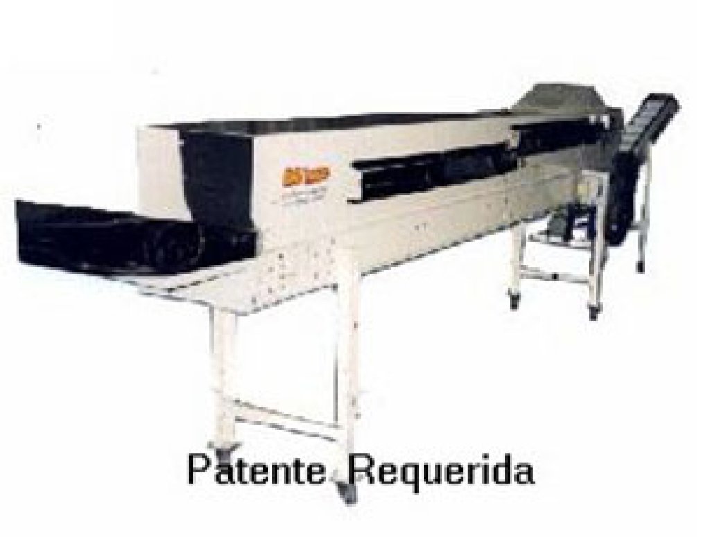 Um sistema de descarga com elevador de taliscas vulcanizadas regulável em diversas alturas,