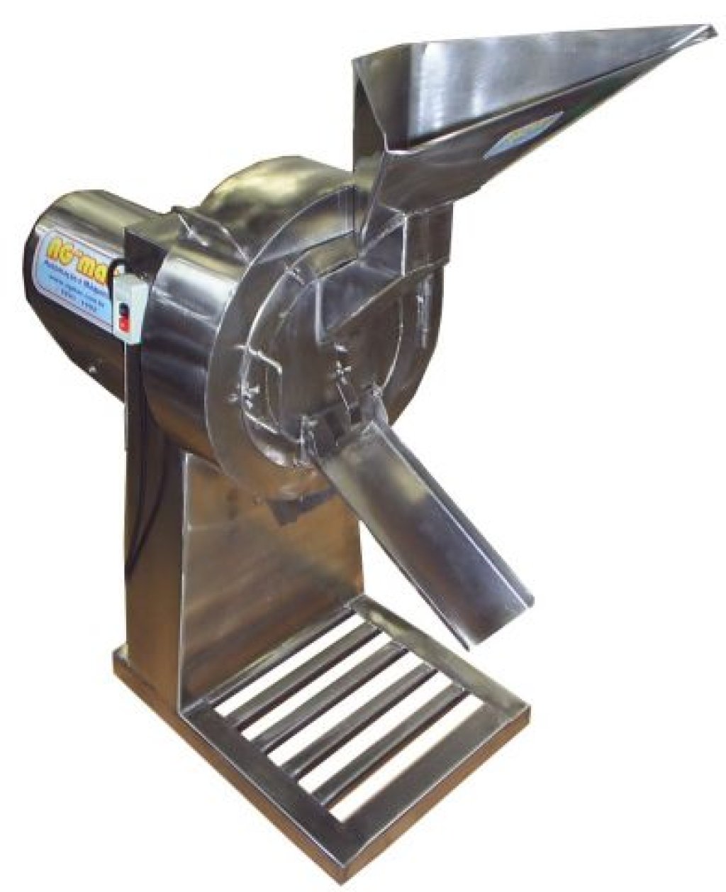 Despolpador rotativo contínuo, com matriz perfurada normal padrão 2mm de diâmetro (pode ser alterada a pedido), com porta superior de acesso e limpeza, dentro das normas sanitárias, altura de alimentação ergonômica com entrada de alimentação em funil contínua, saída frontal de fibras e sólidos.