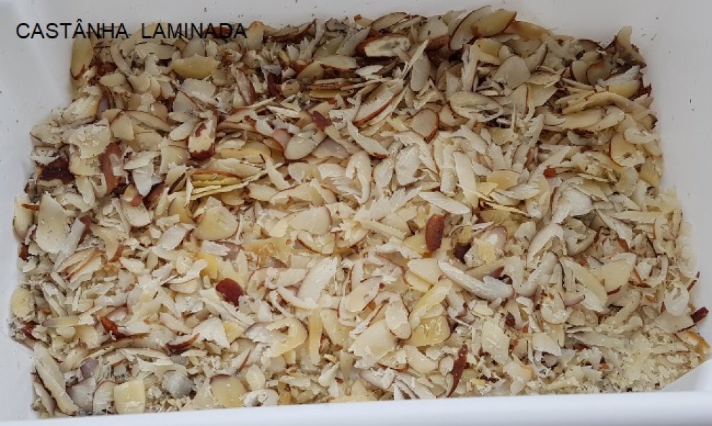 ATENÇÃO: Alguns produtos se a finalidade é para fazer lâminas então precisam ser fatiados antes da secagem (na forma crua na pós colheita/beneficiamento mesmo que seja descascado ou não, como amêndoas, castanhas, nozes e outras sementes duras similares, do contrário precisam ser amaciadas (c), por maceração) e só depois devem ser secas ou torradas pelas diversas formas disponíveis (d), isso à escolha do operador ou comprador, além disso depois de classificadas/ selecionadas (e) são separadas das partes não inteiras, e da da farinha que sobra (f), a regulagem de espessura tem direta relação com o resultado de laminação e é bem sensível, devendo ser adequada a situação do produto (g), nem todo produto pode ser fatiado/laminado e se estiver muito seco vai ficar muito quebradiço devido as características particulares.