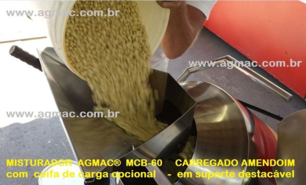 Máquina misturadora do tipo betoneira, ergonômica, de fácil manejo, com rodas (evita contaminação), sistema de transmissão com correia interna (evita uso de corrente externamente), 10 posições de estacionamento para mistura, sistema mecânico interno e chassi e componentes de contato inox, base, proteção, tanque e eixo com aletas em aço inox AISI 304 polido, para facilitar a mistura internamente sistema raspador.