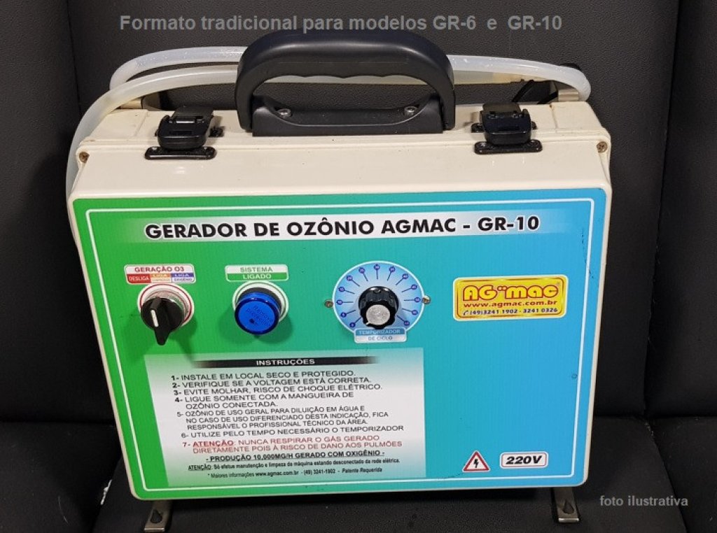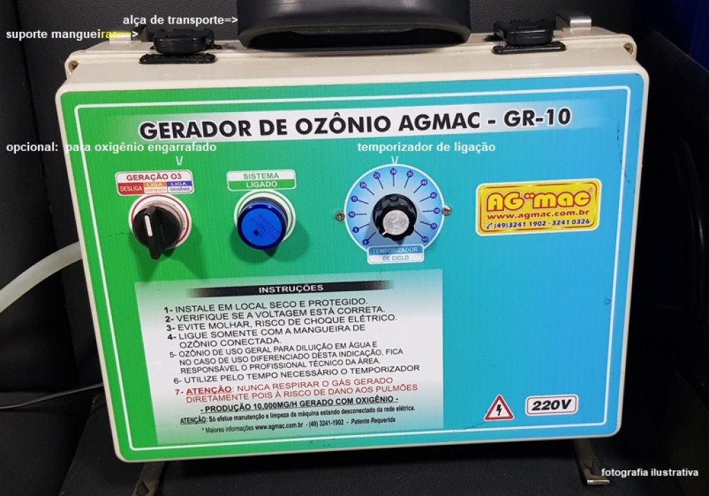 1- GERADOR OZÔNIO AGMAC-GR-6, 220V MONOFÁSICO, COM TEMPORIZADOR DE ATÉ 1 HORA E LIGA/DESLIGA, FILTROS FIBRA COM CARVÃO ATIVADO,