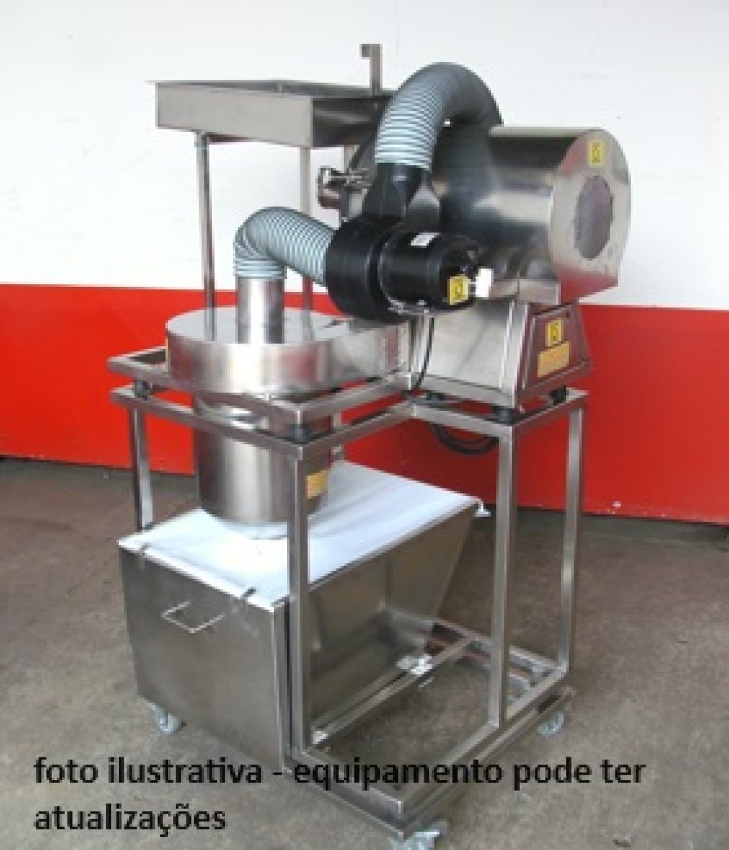 Atenção: esta máquina é destinada a refinar alimentos e outros (consultar) e portanto sem outros sistemas de exaustão externa e pode produzir pó no ambiente e neste caso o operador precisa de EPI conforme legislação..