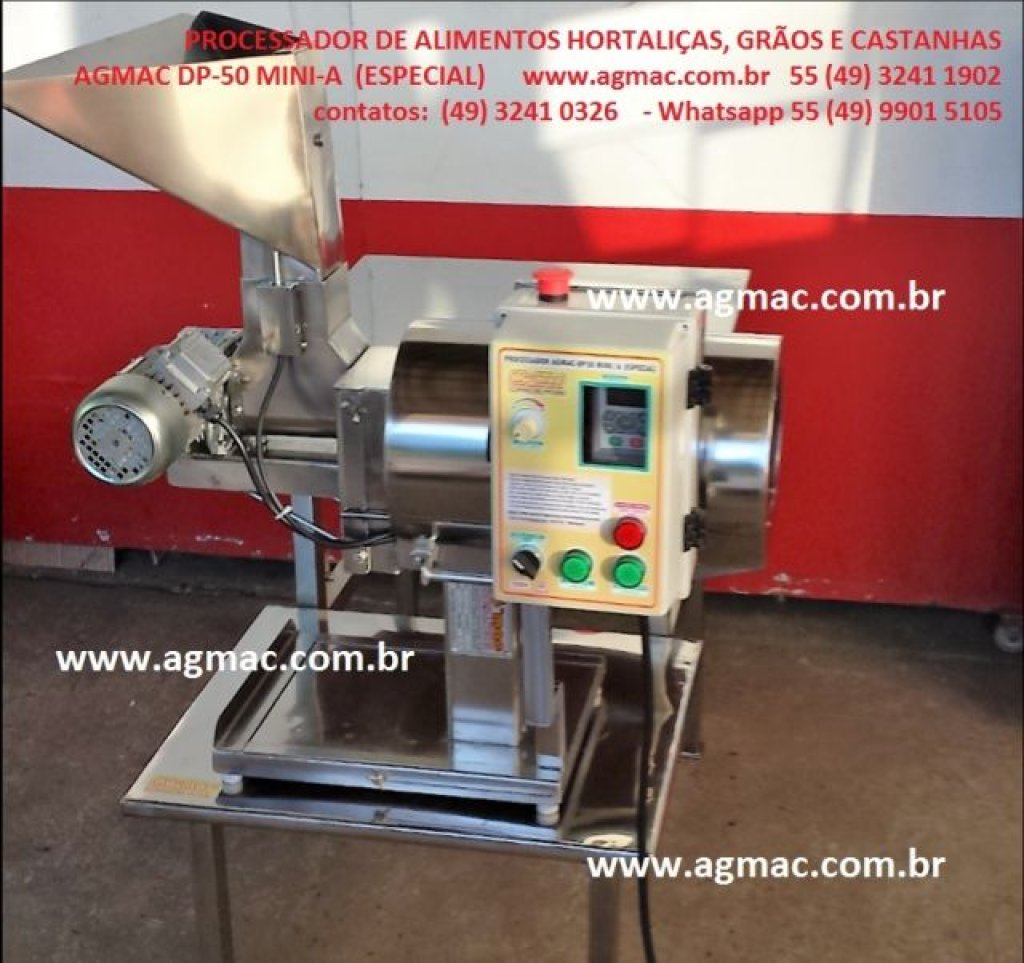 Equipamento é destinado a linha de produtos funcionais, onde precisa produzir muitas pastas, picados e outros, a partir alho e cebola, de amendoim, amêndoas, castanhas, nozes e produtos outros similares. Fabricação em aço inox AISI 304 polido dentro das exigências de segurança e sanitárias. Equipamento exclusivo.