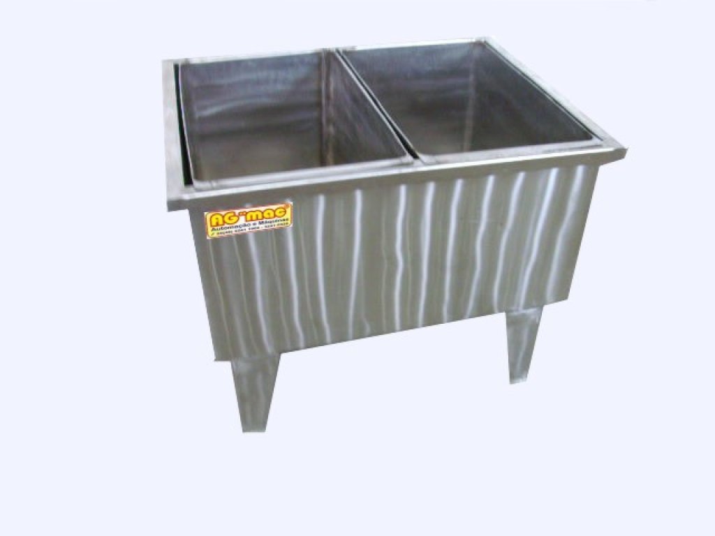 Tanque de Imersão fabricado em aço inox AISI 304 polido e sanitário, destinado a receber alimentos sólidos (ex: pode ser alho debulhado ou descascado), com isso procedendo o banho químico em água fria. Esse sistema pode complementar o branqueamento térmico do tanque pasteurizador, que além de melhorar a aparência ainda faz aumentar a durabilidade dos produtos envasados.