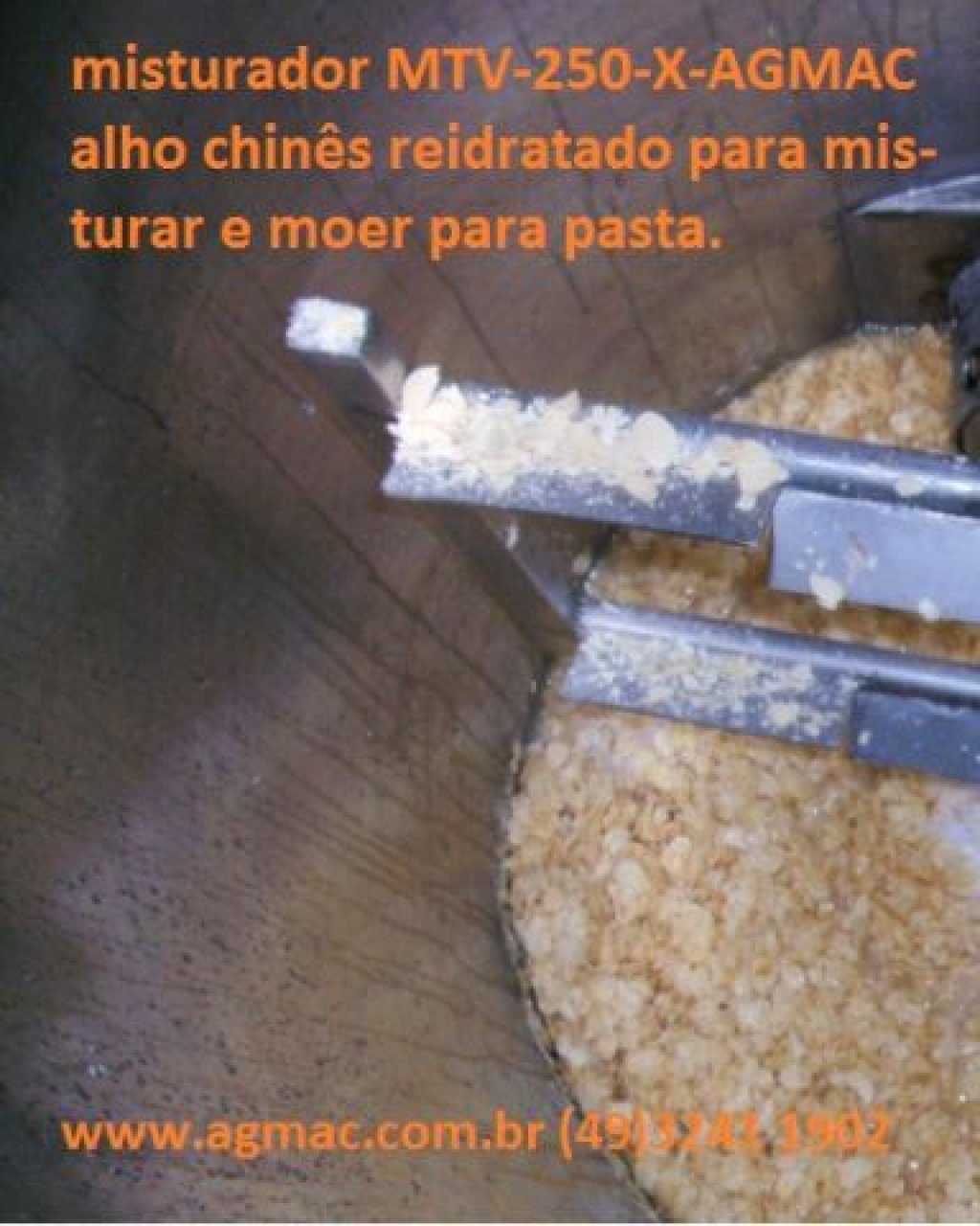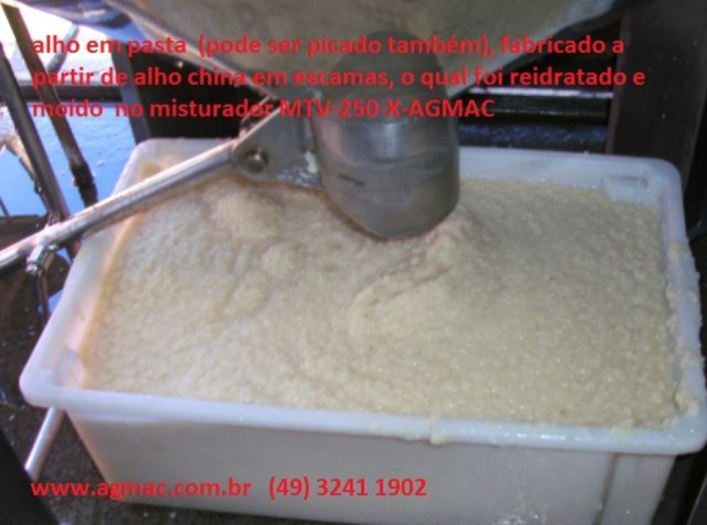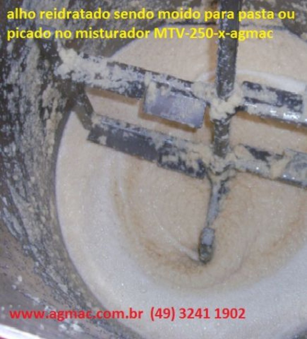 Tanque inox com fundo afunilado para descarga com válvula de controle (veja fotografias e vídeos), com misturador central vertical, com processador picador integrado, ligações independentes podendo ser usado como misturador/hidratador, misturador/hidratador/picador, ou misturador picador, ideal para uso em alho chines desidratado em escamas ou granulado,ou outros desidratados com finalidade de mistura e reidratação, para fazer pasta ou picados.