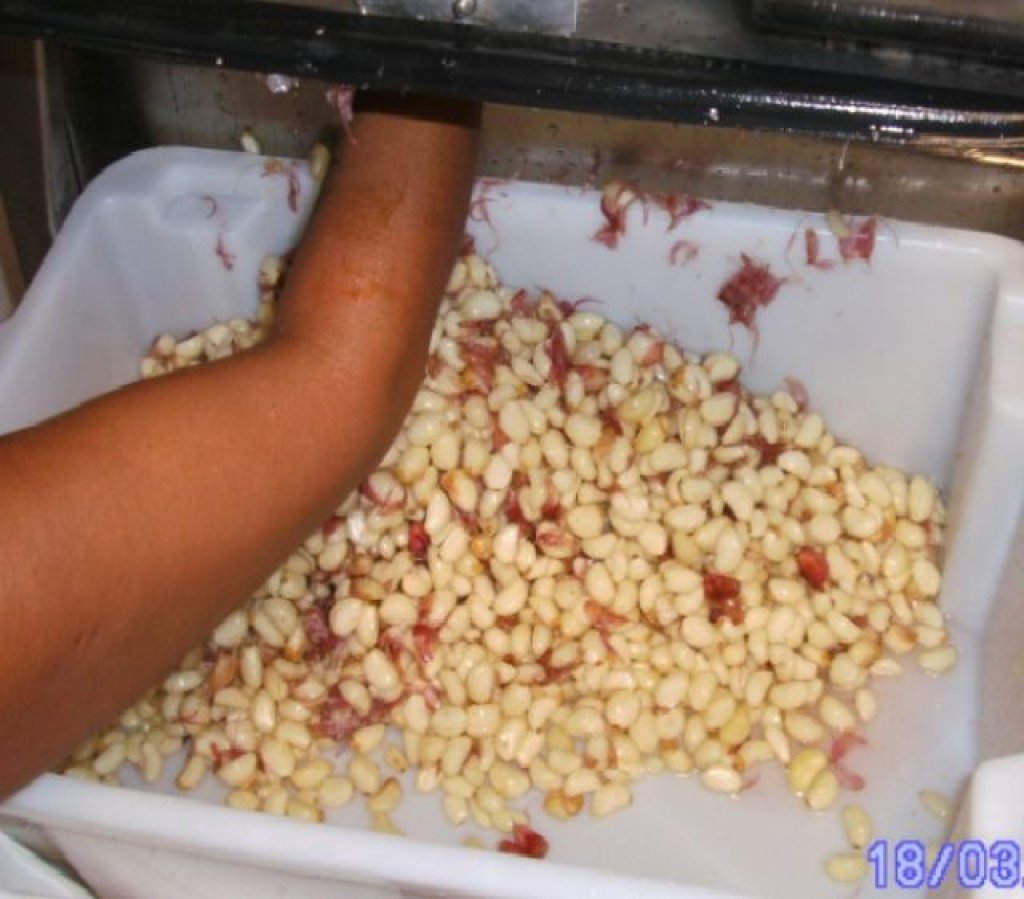 É importante observar que há limites de tempo para a permanência do alho em imersão, os quais impactam diretamente a qualidade do produto final. Em tanques com aquecimento, como pasteurizadores, o tempo máximo de imersão é de apenas alguns minutos. Já em tanques com água fria, o tempo pode se estender por algumas horas, sendo o limite máximo recomendado de 10 horas. Após esse período, a casca do alho tende a se desintegrar, formando uma massa pastosa que compromete o funcionamento do sistema hidráulico da máquina e resulta em um produto com aparência visual insatisfatória. Por esse motivo, o operador deve definir o tempo ideal de processamento por meio de análise visual contínua.